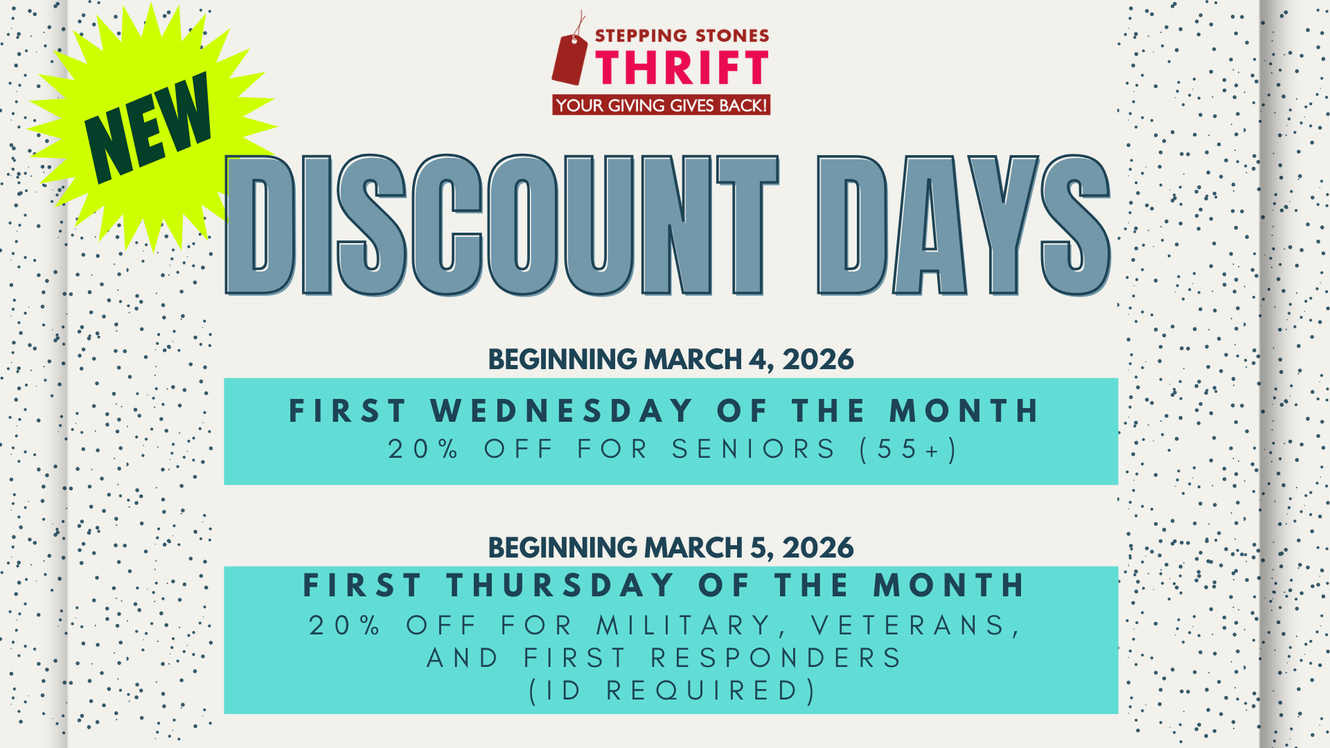 • Brand New Discount Days Coming March 2026